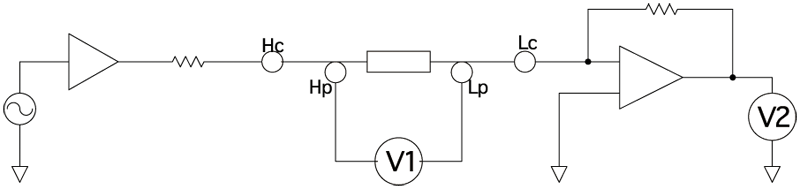 作為L(zhǎng)CR測(cè)試儀的測(cè)量回路,較多采用的回路方式之一就是"自動(dòng)平衡電橋法"。有Hc、Hp、Lp、Lc的4端子,并將所有端子連接被測(cè)物?;芈犯怕院透鞫俗拥墓δ苷?qǐng)參考如下內(nèi)容。