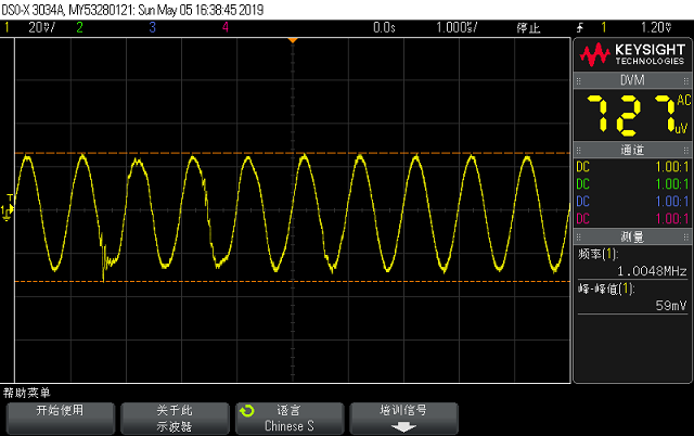 使用自動(dòng)平衡電橋阻抗測量電路1MHz測量6.8nF Lcur(虛地點(diǎn))實(shí)測波形如下: