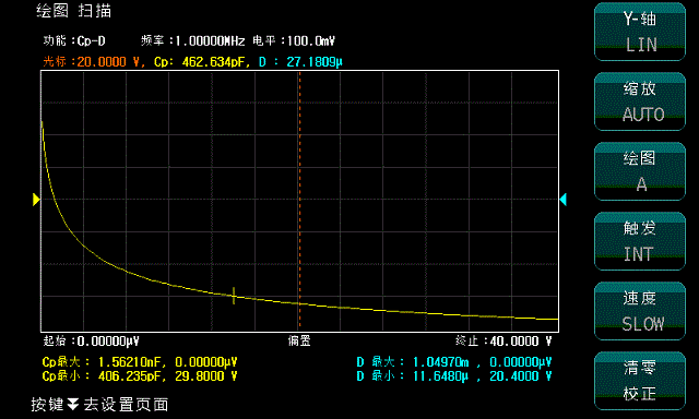 主要用于測試半導體器件PN結(jié)的勢壘電容在不同偏壓(V)下的電容量(C)。ZX38A-CV半導體C-V特性測試儀除了可以連接電腦上位機軟件掃描分析功能外,還提供在儀器大屏液晶顯示器上直接顯示C-V掃描曲線分析功能。這樣客戶不再需要為每臺儀器配置一臺電腦。這種方式既保證了測試效率,又降低了測試成本、還方便客戶在生產(chǎn)線上使用。還可以把儀器屏幕上顯示圖形和測試數(shù)據(jù)直接拷貝到U盤。