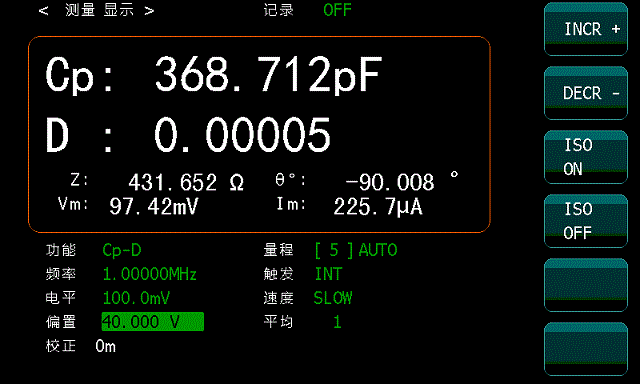 ZX38A使用的自動平衡電橋測試原理,把以往簡易的測量運放改進成:Lpot檢零電路,0度90度數(shù)字檢相及調(diào)制解調(diào)電路,Lcur高頻驅(qū)動電路等等組成的矢量負反饋網(wǎng)絡。從而保證了測量電路的虛地端更接近理想。自動平衡電橋技術(shù)能夠更好的抵消疊加偏壓對電容測量造成的誤差。
